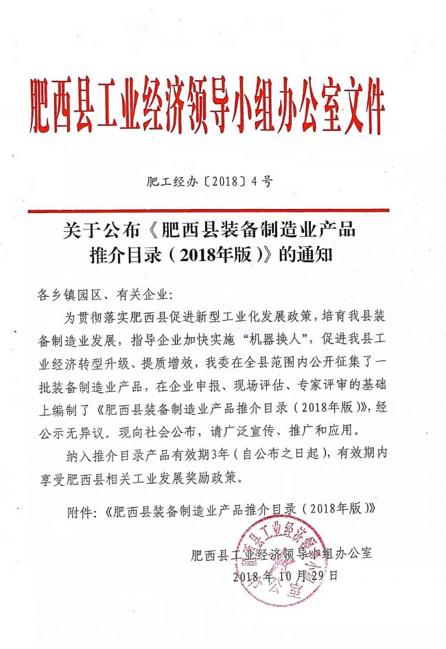 Anhui Andaxing Intelligent Equipment Co.,Ltd Three Series of Products listed into “Recommended Product List of Equipment Manufacturing Industry by Feixi County Government” Industry NewsAndaxing19/11/2018Anhui Andaxing Intelligent Equipment Co.,Ltd, located in Feixi County of Anhui Province, one subsidiary company of Andax详情